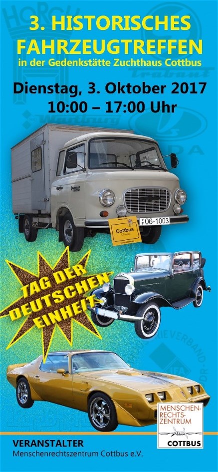 Das 3. Historische Fahrzeugtreffen findet am 03.10.2017 von 10-17 Uhr in der Gedenkstätte Zuchthaus Cottbus statt