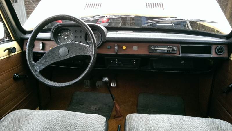 Motorraum ist sauber und insgesamt unverbastelt. Die Innenausstattung ist zwar gut in Schuss und sauber, allerdings sind bereits durch den ersten und einzigen eingetragenen Halter die Originalsitze durch eine Garnitur eines 1.3ers ersetzt worden. Da wäre ich mittelfristig an einer Rückrüstung auf die originalen interessiert. Elektrik funktioniert bis auf Türkontaktschalter und Mäusekino (da wusste sich der Verkäufer nach Austausch von Geber und Anzeigegerät keinen Rat mehr).