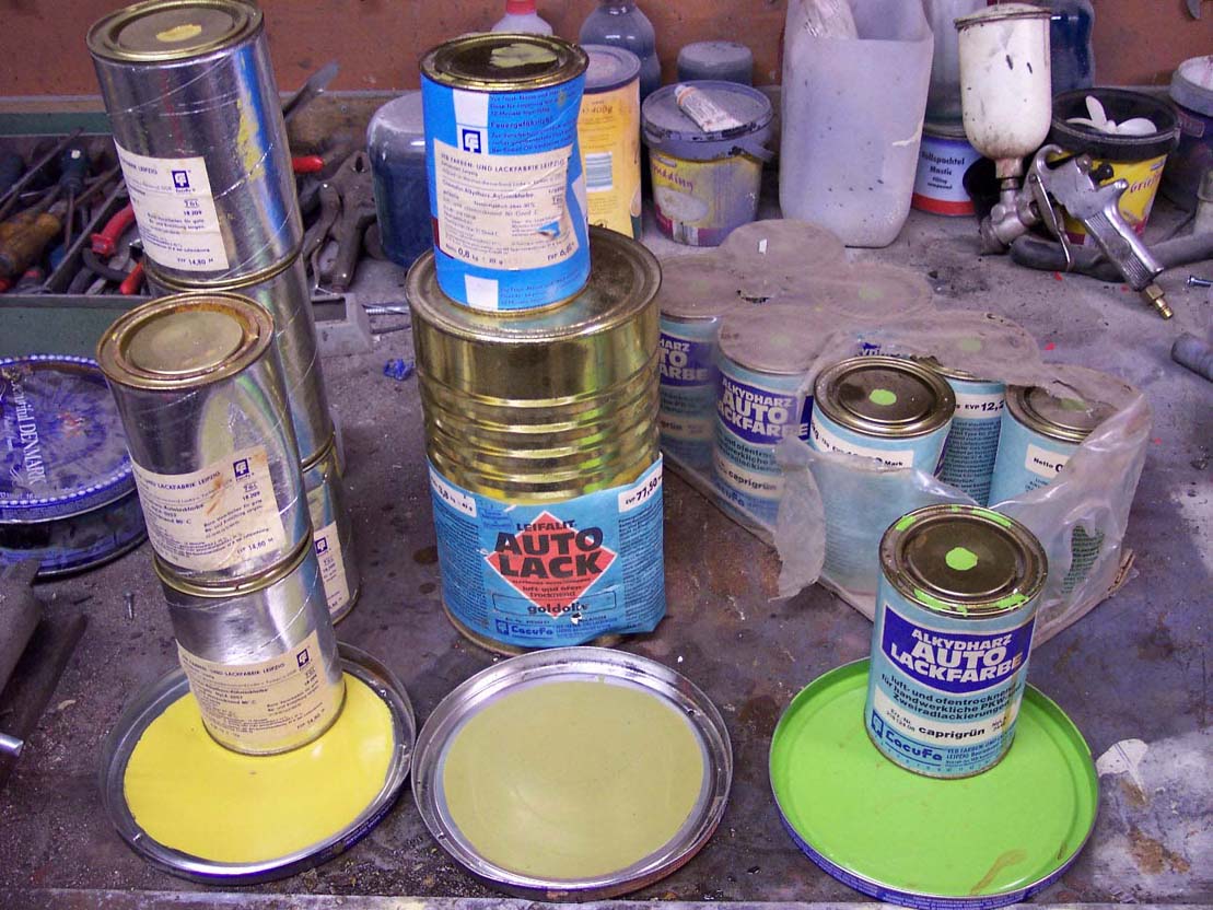 Hier nochmal paar klärende Bilder. Natürlich kann man die Farbe auch heute noch für eine KFZ Lackierung nutzen vorrausgesetzt man traut sich eine Kunstharzlackierung zu. Für einen PKW sollten 3-4 Liter reichen für einen B 1000 Bus werden 4-5 Liter Farbe benötigt.