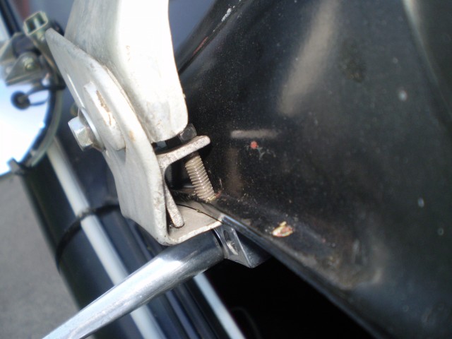 Die Schute scheint soweit richtig befestigt zu sein, aber eigentlich gehört sie etwas höher. Oder ist sie zu breit? Da könnte es eine wartburg-Sonnenschute sein. Die sind etwas breiter.