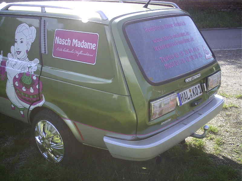 Ein Wartburg eignet sich auch für Werbung. Denn viele leute drehen sich nach solchen Autos um, weil ja eh nur noch wenige fahren.