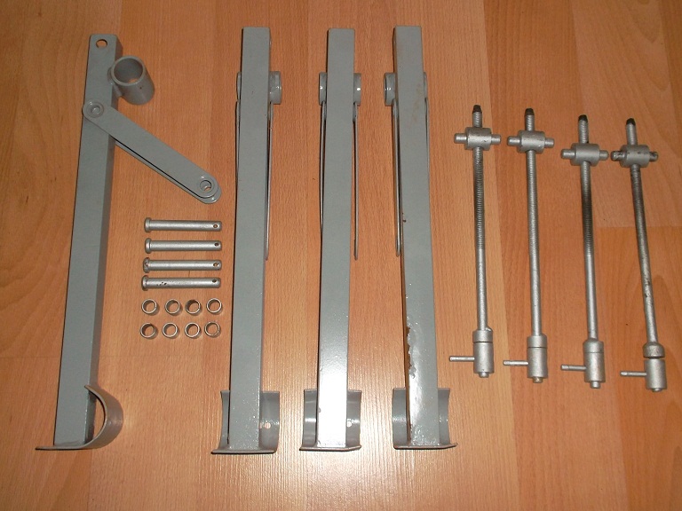 Von einem früheren Camptourist - Anhänger CT 6-2 habe ich noch diese Abstellstützen übrig. Sie wurden mal grau pulverbeschichtet, aber nie mehr verbaut. An einer Stütze löst sich die Beschichtung etwas. Natürlich können sie trotzdem verbaut werden, die zugehörigen Hülsen und Gewindestangen (mit Felgenlack behandelt) sind mit dabei.