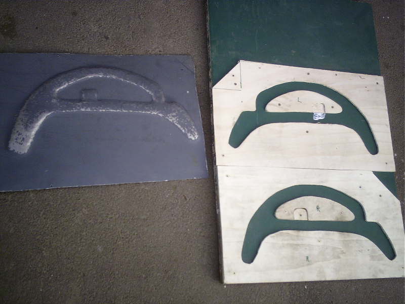 Ich hab heute nun die selber gebaute Klopfform für die Sicken in den hinteren Touristradhäusern ausprobiert und beide Seiten gedengelt.