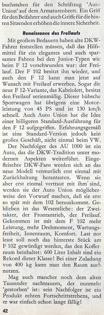 Re: zeitgenössischer Testbericht DKW F102 von 1963