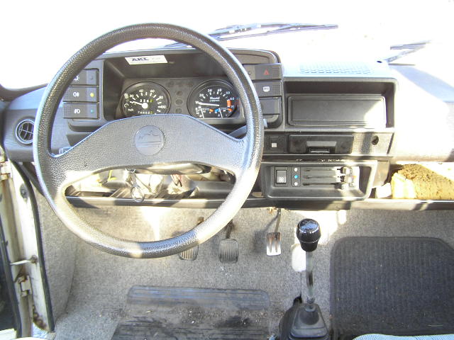 Umbauten: NZ-Einspritzung aus einem Golf 2 zusammen mit dem G-Kat (Grüne Plakette mit Abgasnorm Euro 1, noch aufrüstbar auf Euro 2, 5-Ganggetriebe aus einem Polo/Golf. Die Änderungen sind eingetragen. Zudem hat er noch das Ungarnkombiinstrument. Sonst ist er serienmäßig, nichtmal mit Radio ;-) .