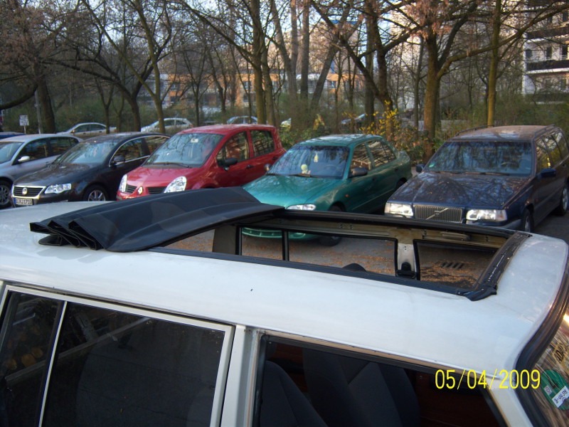 Och habe mir eine Schablone gebaut aus Pappe/Papier mit allen Löchern für die Form und die Schrauben. Aufgeklebt und ausgeschnitten. Das Faltdach was der "Wartburg im Link" drinne hat ist auch vom Twingo. Ich habe das el.Glasdach vom Twingo was genau in den Ausschnitt des Stofffaltdaches passt. Ich habe 2 x Tüv mit dem Glasdach durch und keinen hat es interessiert. Sind aber recht teuer, da die Twingofahrer das Teil auch suchen. Besteht aus 2 Teilen - dem Dach und dem Motorrahmen. Ja, es ist Dicht und öffnet schön weit. Kompl. Fläsche aus Glas wobei der vordere Teil über den hinteren fährt. 4 Rollos halten Sonne draußen oder auch nicht.