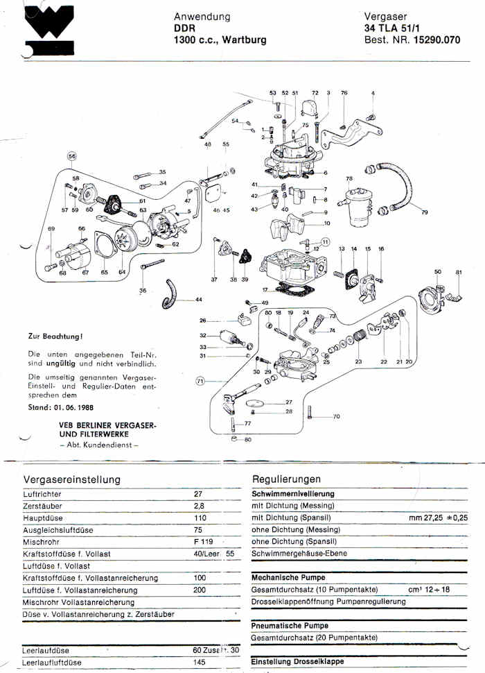 das Teil Nr. 72 scheint ein Problemstellchen zu sein, hatte sich bei mir auch in Wohlgefallen aufgelöst bzw. bei einem anderen Exemplar sind die Haltenasen unten einfach weggebrochen.... hält aber recht lange dafür dass es (PLASTE! an sich nicht dauerresistent gegen Öl/Benzin) ständig Öl/Benzindämpfen ausgesetzt ist. Theo kannste die Kappe weglassen, der Vergaser läuft trotzdem. Im extrem staubigen Umfeld könnte die Kappe vermeiden, dass etwas weniger Dreck in den Vergaser kommt, da könnte man aber auch etwas improvisieren und nen Gummiring um die durchgeführte Stange von außen hängen.... Vergaser-Winter in Gotha könnte sowas auch liegen haben, hab mal einen Vergaser dort machen lassen *Empfehlung*...