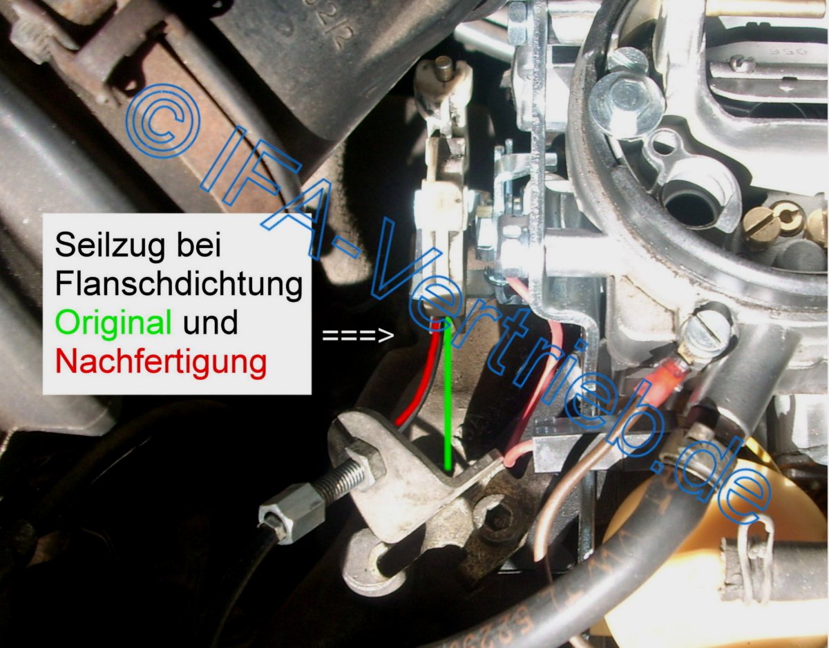 Mit dem Durchmesser des Loches hat Jo übrigens auch recht, es hat reichlich 32 mm Durchmesser, statt 34 mm. Auch hier gilt: Alle Händler bieten diese Flanschdichtung und auch die Dichtung zwischen Flansch und Vergaserwanne an als passend für Trabant 1.1, Wartburg 1.3 und Barkas B1000-1, was aber nicht korrekt ist. Eigentlich sind die nur passend für den Trabant 1.1 mit seinen 32 mm Durchlass und für die anderen Vergaser gab es früher extra Dichtungen mit 34 mm.