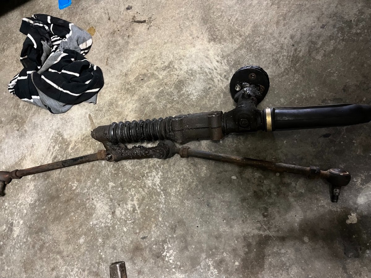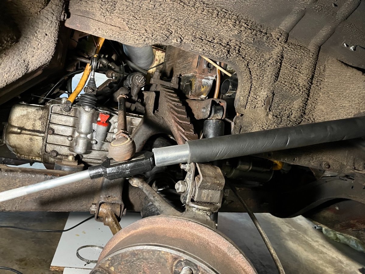 Also habe ich spontan das komplette Lenkgetriebe rausgeholt (was vergleichsweise einfach ging) und anschließend die Spurstangen demontiert.