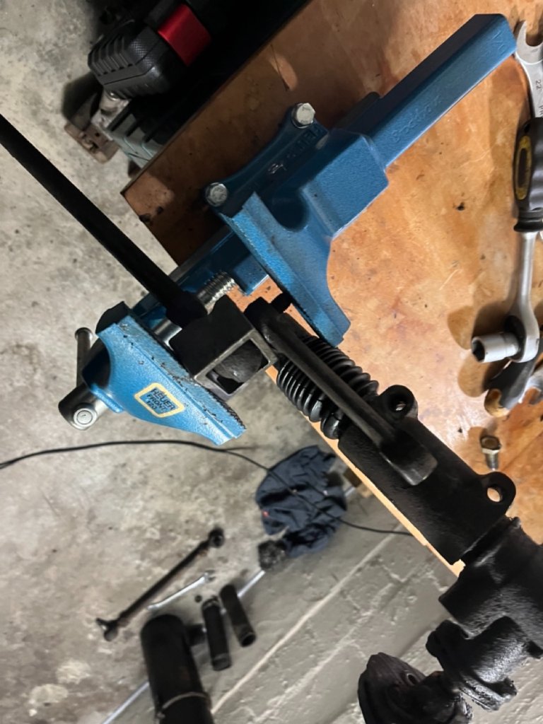 Die Mutter des Spurstangenkopfs habe ich losbekommen. Der Spurstangenkopf selbst hing aber mindestens genauso fest in der Spurstange, sodass ich beim Versuch, sie zu Lösen den inneren Spurstangenkopf ziemlich lediert habe. Die an der Spurstange festgeschweißte Mutter ging dabei auch ab.