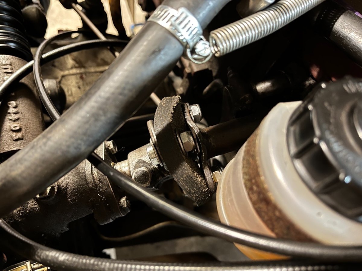 Der Abstand zwischen Lenkgetriebe und Lenkstange ist zu groß. Die zuerst montierte Hardyscheibe hat sich durch das anschließend festgezogene Lenkgetriebe ordentlich auseinander gezogen. Jetzt weiß ich auch, warum zuvor so ein Provisorium verbaut war. Jetzt habe ich natürlich Sorge, dass das keine dauerhafte Lösung ist und die Hardyscheibe evtl. kaputt geht. Außerdem geht die Lenkung dadurch auch ohne Belastung sehr straff und schwer, da die Lenkstange extrem Richtung Motorraum gespannt ist. Somit gibt es kaum Rückstellkräfte und ich bin noch skeptisch, ob das Lenkradflattern wirklich behoben ist. Was tun? So lassen? Oder gibt es evtl. dickere Hardyscheiben?