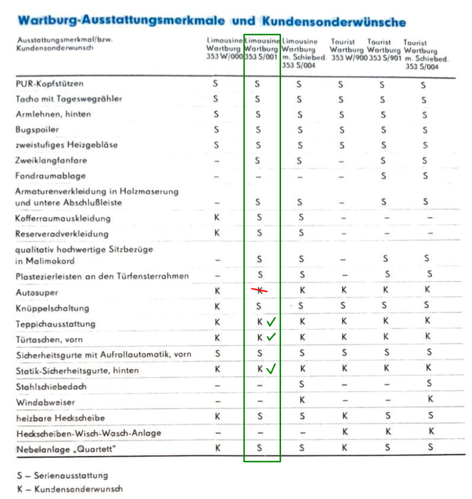 Zumal das Typenschild eindeutig lautet: "Typ: 353 001" - also Sonderwunsch. Fotos vom Wartburg siehe: