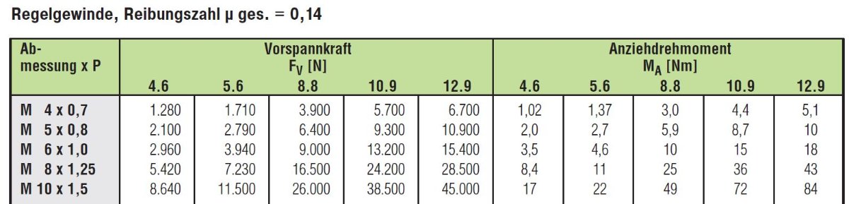Übrigens ist das Anzugsmoment lediglich ein Indikator für die Vorspannkraft der Schrauben und gilt nur bei einer gewissen "Reibungszahl":