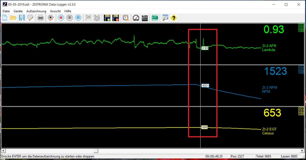 Daß Zylinder 3 so schön saubergebrannt ist hat damit zu tun, daß er wegen Nebenluft beim Ansaugkrümmer schön mager und dann fest lief.