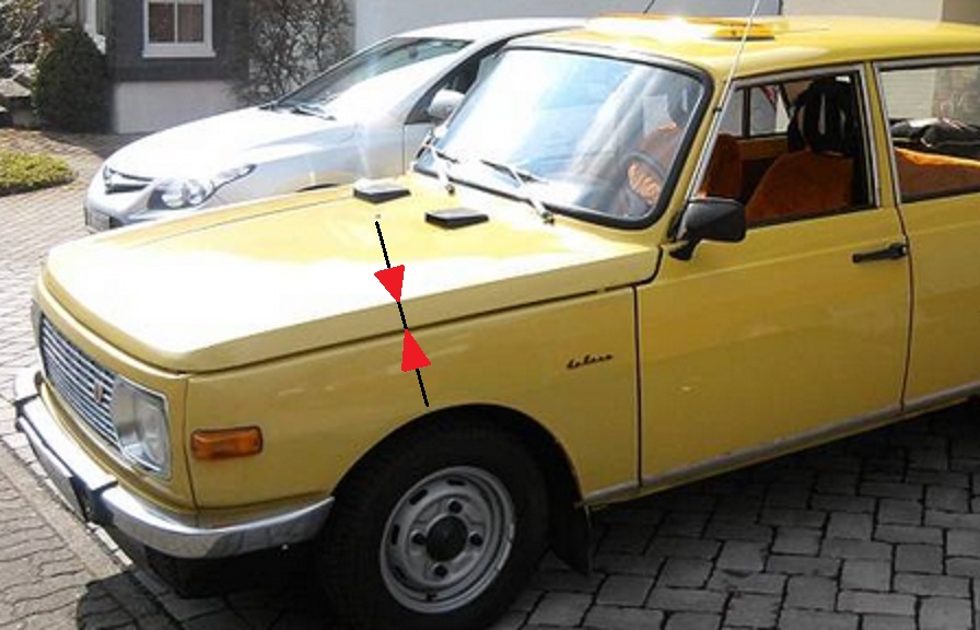 Was mir wegen der Motorhaube und dem Kofferraumdeckel so durch den Kopf gegangen ist: Kann es sein, dass die Kanten der Haube und des Deckels zu aufwendig geworden wären? "Normale" Hauben sind ja an den Rändern meist gerade, beim Wartburg aber eben nicht...