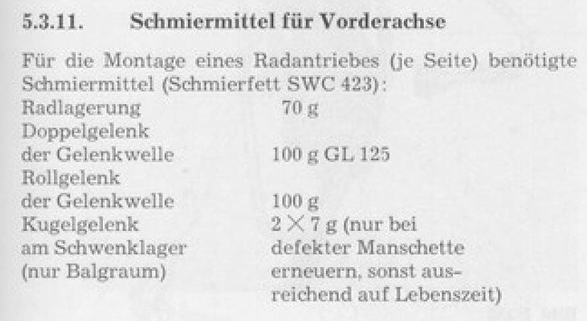 Da hab ich nun erstmal ein Tripodenfett bestellt, hab aber auch ein MOS2 Fett in der Werkstatt was gehen sollte. Ich überlege aber ob mans nicht wie gehabt beim GA 600 Getriebefließfett belassen sollte, das sich augenscheinlich bestens um die Tripode verteilt. Womit schmiert ihr eure Gelenkwellen ab?