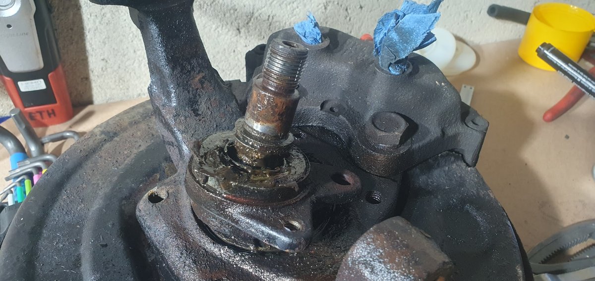 Normal sollen die Traggelenke und auch Spurstangenköpfe an der Sitzfläche mit etwas Fett montiert werden, was hier scheinbar nicht so war, der ist gut fest gerostet und kommt keinen mm bisher. Ich denke morgen oder Freitag ist der Ausdrückersatz da, dann gibts n zweiten Versuch und zur Sicherheit haben wir bereits ein neues Ersatzschwenklager aufgetan.