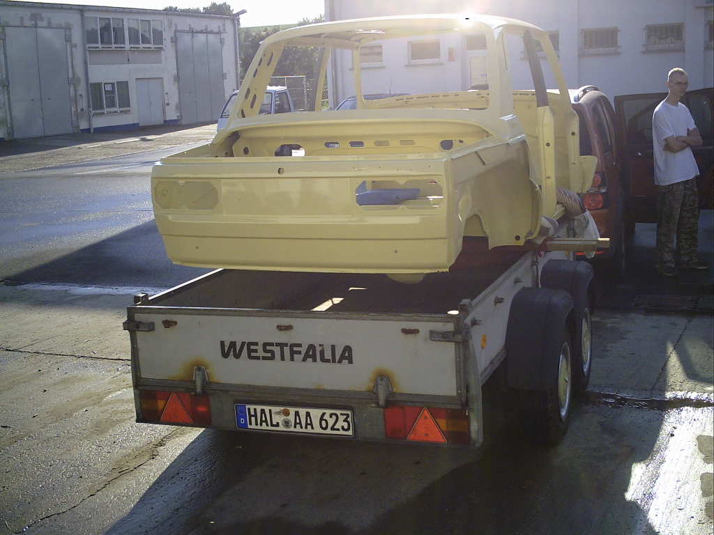 Tja, meine Karosse hatte ja auch schon lange Heimweh, und heute ist sie nun wohlbehalten wieder in die heimische garage auf den Rahmen gekommen.