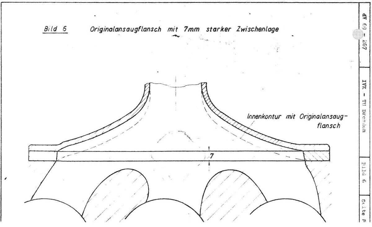 Beim Ansaugflansch des BVF-Fallströmer, kann es sich zudem als hilfreich erweisen, diesen mit einem Zwischenflansch am Motorblock zu montieren, da die originale Innenkontur des Flansches u.U. die Kanalgröße einschränkt (Bild im nächsten Beitrag).