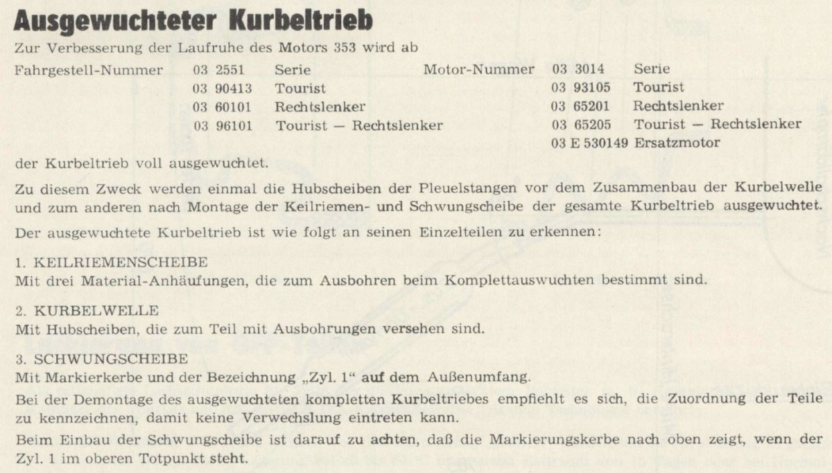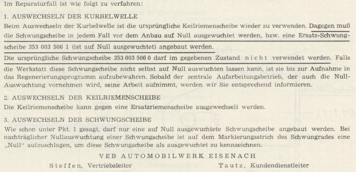 Was die Werksmitteilung allerdings nicht erwähnt sind Schwungmassen ohne jede Markierung, wie auch Toni schrieb. So eine hatte ich auch schon mal da und hätte die auch wuchten lassen, wenn ... ja wenn die nicht so schlimm gestrahlt worden wäre, weshalb ich die zurück gesandt hatte.