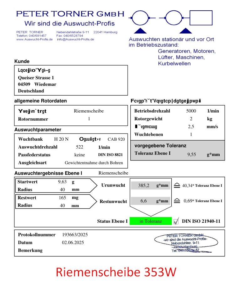 Schwungmasse und Riemenscheibe sind fertig, kommen die Tage per Paket zurück aus Hamburg. Mit Versand zusammen 204 €. Wuchtprotokolle (vorher/nachher) lade ich euch morgen noch hoch.