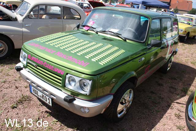 Ein Wartburg eignet sich auch für Werbung. Denn viele leute drehen sich nach solchen Autos um, weil ja eh nur noch wenige fahren.