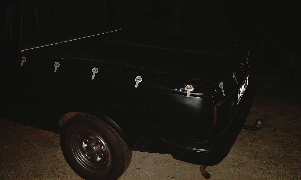 Zu den Umbauten gehört auch ein Überrolbügel hinten auf der Ladefläche und ich werde ihn entweder Schwarz Matt oder Weinrotmetallic lackieren lassen.