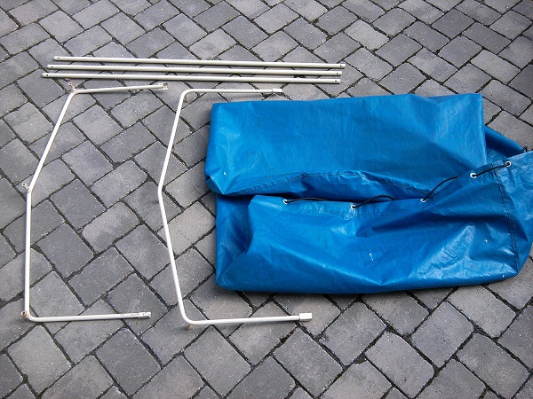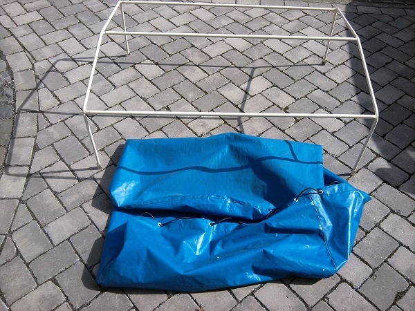 Ich verkaufe bei eBay meine gut erhaltene Hochplane mit dazugehörigem Spriegel für verschiedene DDR-Anhänger.