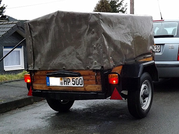Zulässiges Gesamtgewicht: 500 kg (wie gesagt, die Anhänger aus DDR-Produktion sind sehr stabil gebaut und vertragen auch mal mehr Gewicht).