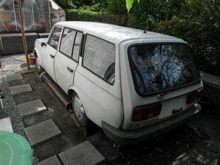 ich möchte jetzt im Winter mit meinem neuen Projekt beginnen. Ein Wartburg 1.3 Tourist. Dieser Stand seit 15 Jahren in einem Garten und hat gerade mal 36000 km runter. Er auch wenn es nicht so aussieht befindet er sich in einem sehr guten Zustand, keine Tourist typischen Roststellen an den hinteren Stehwänden oder Radkästen. Auch die Innenausstattung ist in einem sehr gutem Zustand. Ich habe das Fahrzeug schon aus dem Garten abgeborgen. Es war etwas aufwändig, da das Fahrzeug komplett eingebaut war. Daher habe ich es vor Ort zerlegt und die Karosserie über das Nachtbargrundstück mit 8 Mann aus dem Garten getragen. Jetzt steht er erstmal trocken in einer Garage.