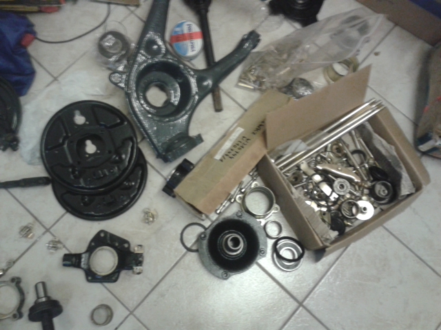 Da dieses nicht mein erstes Wartburg Projekt (Wartburg 1.3 Trans, 353 Limousine und 312 Camping) habe ich ein Haufen Teile liegen und konnte nebenbei schon das Fahrwerk aufarbeiten. Der Rahmen wurde gestrahlt und mit LKW Fahrgestelllack behandelt. Die Querlenker, Schwenklager und alle anderen Komponenten wurden gestrahlt, verzinkt und gepulvert. So dass es jetzt erst mal an den Zusammenbau des Rahmens + Fahrwerk geht.