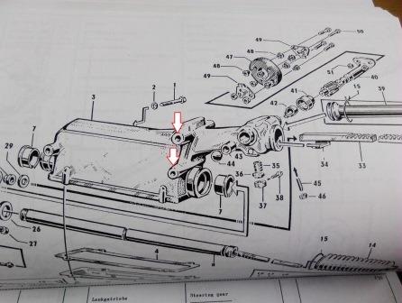auf die rückseite des lenkgetriebes wird der halter angeschraubt....