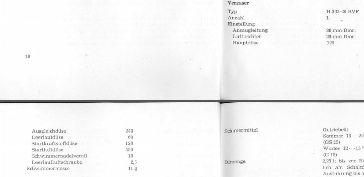 An sonst, der 311-1000er hatte ab Werk noch den H 362-20, erst am 312/1 kam der -24 zum Einsatz, aber beide hatten eine 60er Leerlaufdüse, also Vorsicht mit den Literaturangaben.