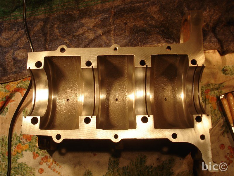 Im Werk wurde die Lagergasse feinstgebort und zwar derart, dass die KW-Hauptlager genau die richtige Pressung erhalten, wenn Block und Unterteil stumpf aufeinander liegen und mit dem richtigen Moment verschraubt sind. Demzufolge wurde ursprünglich zwischen Block und Unterteil überhaupt keine Dichtung verwendet, denn diese bildete bei den damalig verfügbaren Dichtmassen zwangläufig einen Spalt aus und verringerte somit die Pressung auf die Lager. Da wohl dann nun doch einige Motoren am Trennspalt zwischen Block und Unterteil sabberten, empfahl man als "Heilung" (ich meine ab dem 39PS-900er) ominös einen "geringen Film eines dünnflüssigen Dichtmittels", ohne hier jemals konkret zu werden. Daher verwendeten wir damals den verdünnten Nitroreperaturlack, denn dieser erfüllte die Anforderung so ziemlich genau - und heute eben das Reinzoplast