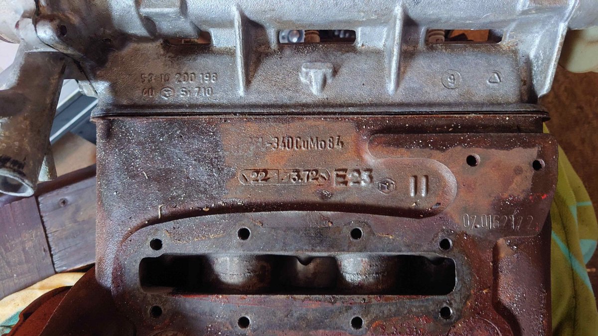 Ich vermute das es sich um einer 1000er mit 45PS handelt, da ein BVF36 verbaut war (der ist aber völlig vergammelt). Vermutlich ist auch eine Keilriemenscheibe ohne Drehschwingungsdämpfer verbaut. Hier fehlt mir aber auf die Schnelle eine Vergleichsmöglichkeit mit einer gedämpften Scheibe.