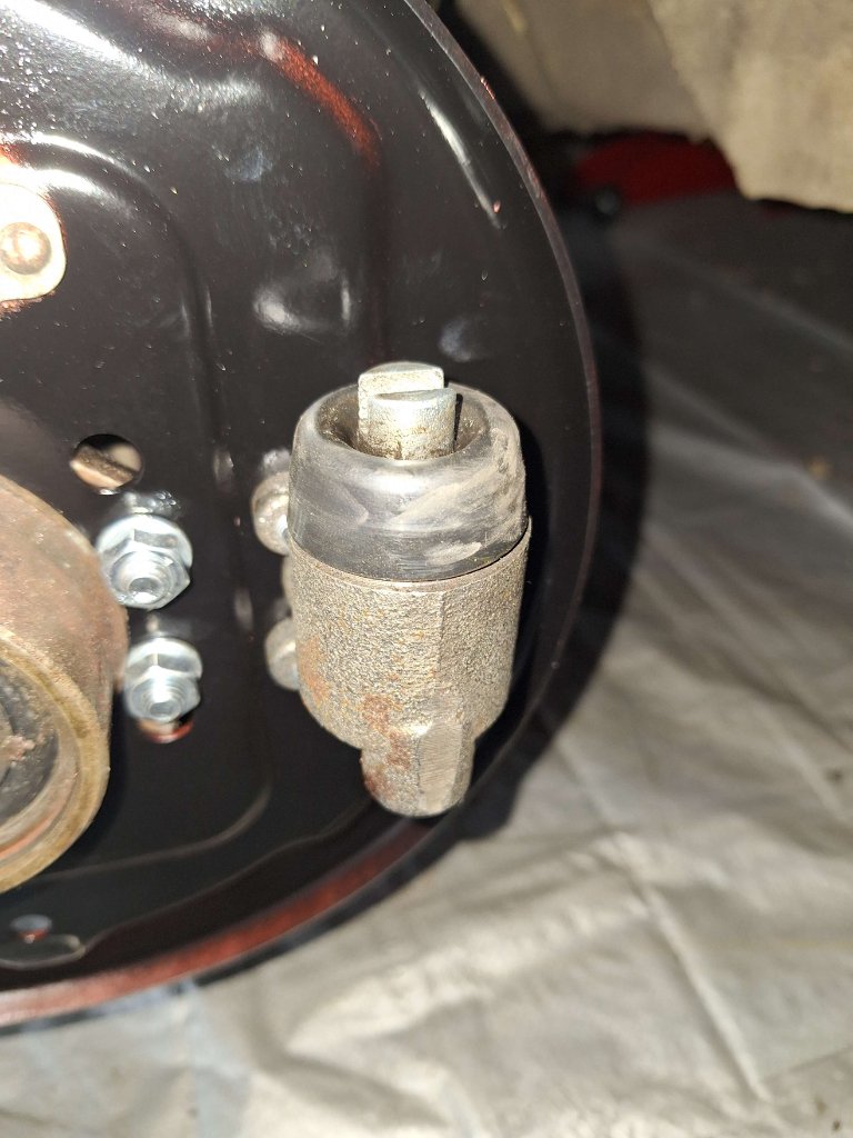 Beim Zerlegen ist mir jedoch aufgefallen, dass links beide Radbremszylinder einen Durchmesser von 27 mm haben, rechts dagegen nur 25,4 mm.
