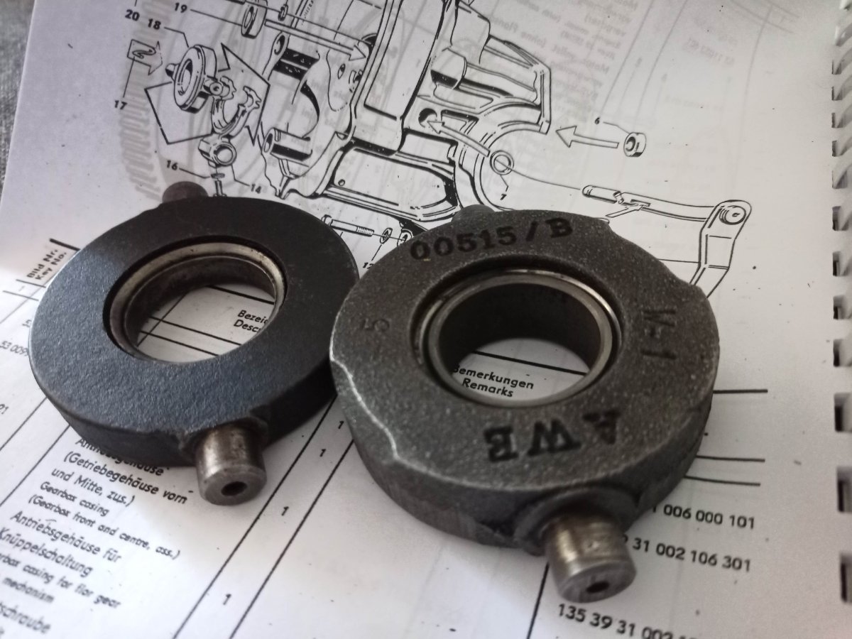 Ich habe eben noch in den Ersatzteilkatalog geguckt. Lager links ist wohl das richtige und das dicke rechte ist bei mir verbaut gewesen und wohl Schuld am Durchrutschen und sehr späten Kommen der Kupplung?