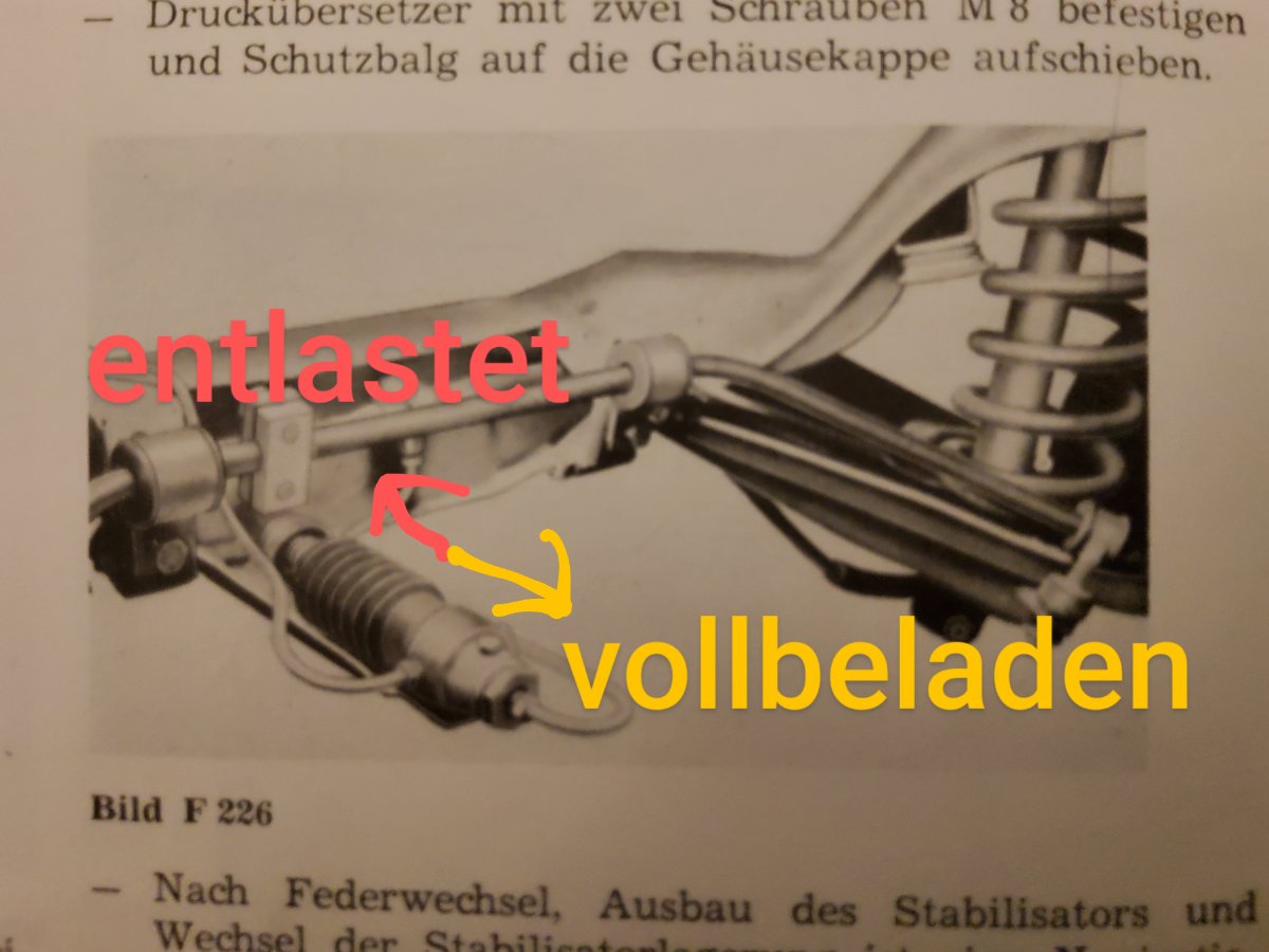 Je nach Gewicht auf der Hinterachse bewegt die Ansteuereinrichtung die Innereien des LADs so? Aber alleine von der Bewegung habe ich den Eindruck, dass ein beladener Zustand den Kreislauf schließt und ein unbeladener den Kreislauf öffnet, obwohl es doch anders herum sein müsste? Ja, ich bin verwirrt.