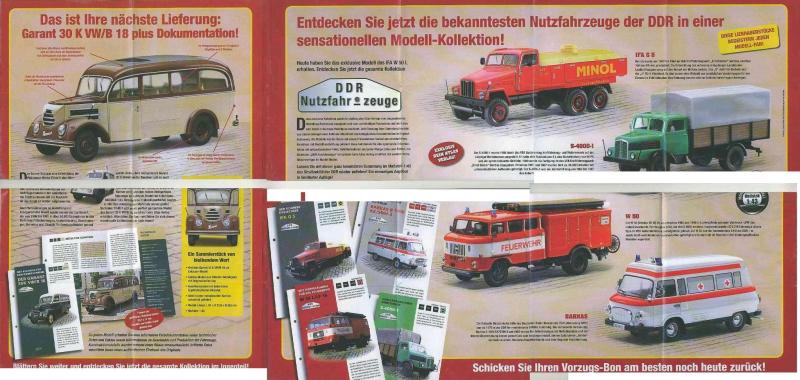 Ich hatte ein Faltblatt bei einer der beiden Lieferungen beiliegen. U.a. der SMH 3 und ein Multicar M22, außerdem zwei russische LKW (ich glaube KRAZ und UAZ? :noplan: ). Muss das Faltblatt nochmal hervorkramen und genauer nachschauen. Ein Ikarus Bus war nicht abgebildet, aber es werden bestimmt mehr als die 5 Modelle.