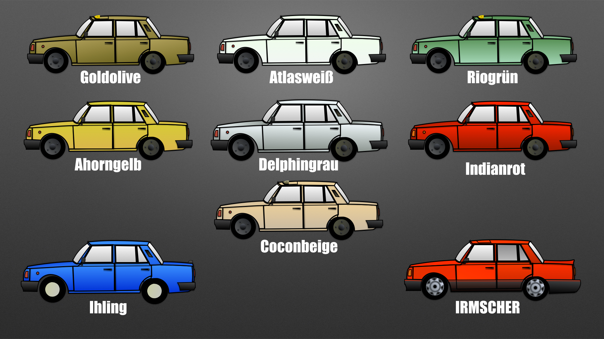 Der blaue Ihling 1.3er vom Ratgeber wurde noch nicht in natura gesehen. Sofern es kein Computertrick war, könnte es das Olympiablau vom 1.1er Trabant sein...Der Irischer hat ein Rot, welches dem Internat nahe kommt, es soll aber eine andere Farbe sein. Vermutlich etwas aus dem Opelregal mit RAL Code...