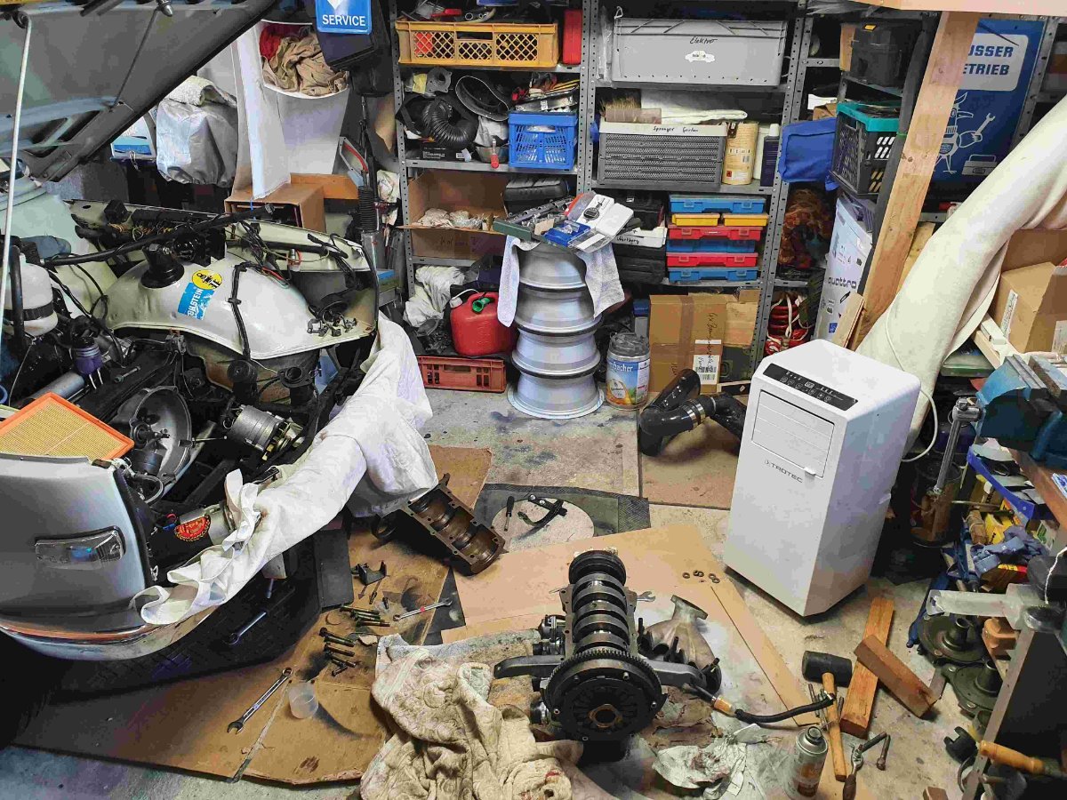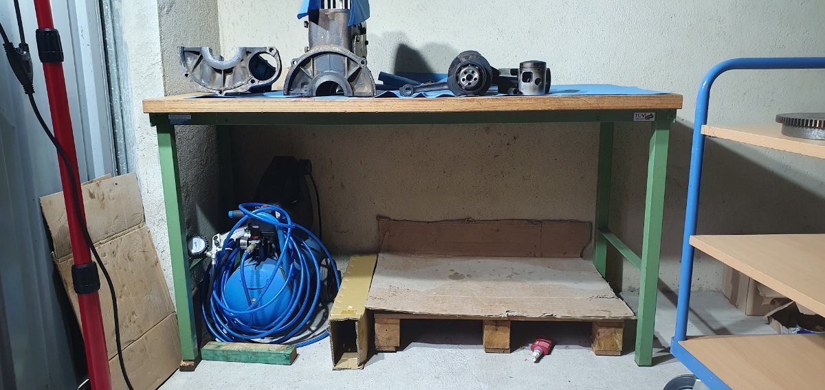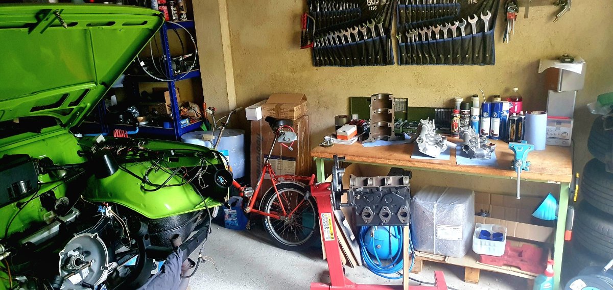 Das muss halt alles untergestellt sein und in eine Werkstatt würde das nie passen zumal da ja auch noch gelegentlich mal Technik von Kunden drin steht und auch Platz verlangt wenn z.B. mal ein Traktorgetriebe komplett zerlegt und repariert sein will.