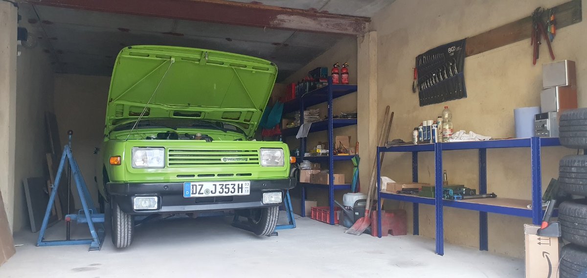 Na ich hab halt nicht nur den Wartburg 353, da sind noch andere, die Platz brauchen (Trabant P60 + halber als Anhänger, P601 + HP 300, DDR Tandem-Trailer, Pferdeanhänger, Traktor Zetor 2011, Traktor Zetor 5011, Traktor Zetor 7340 + DDR Gitteranhänger, Schwalbe KR51/2, BMW 728i von 95 (Erstbesitz, DIN Kennzeichen), plus das neumodische Westblech (Peugeot 206 CC, VW T6 und Caddy 4) sowie ein paar landwirtschaftliche Geräte...