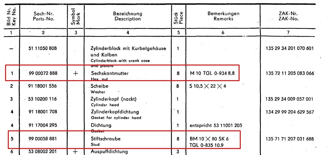 Die 2 Schrauben am Krümmerausgang sind freilich auch noch neu gekommen, die waren da nur geheftet um nicht lang suchen zu müssen wo die originalen sind, wegen der Maße. Da sind nun neue gleider Dimension und Güte drin, jedoch mit Kupferklemmmuttern da ich damit beim Trabant beste Erfahrungen sammeln konnte.