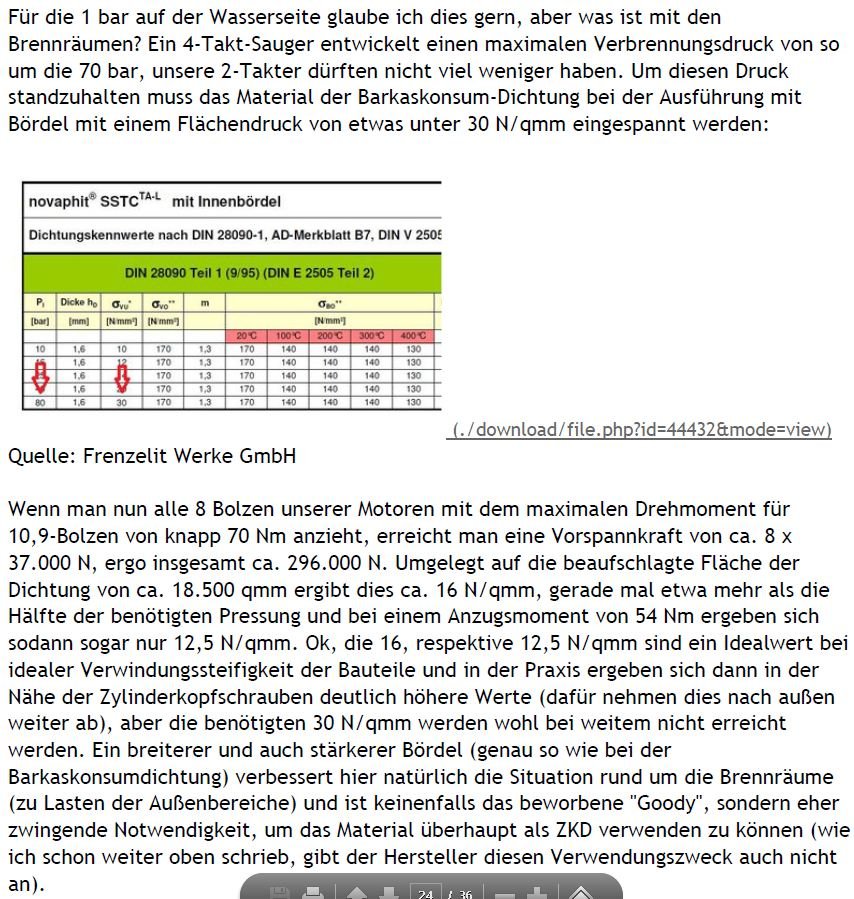 Die Barkonaut ZKD zeige kein Kaltsetzverhalten wie bei den DDR-Dichtungen üblich, müsse also nicht wie normalerweise im Reparaturhandbuch beschrieben nach dem warmlaufen lassen und abkühlen lassen, noch mal 30° weiter angezogen werden.