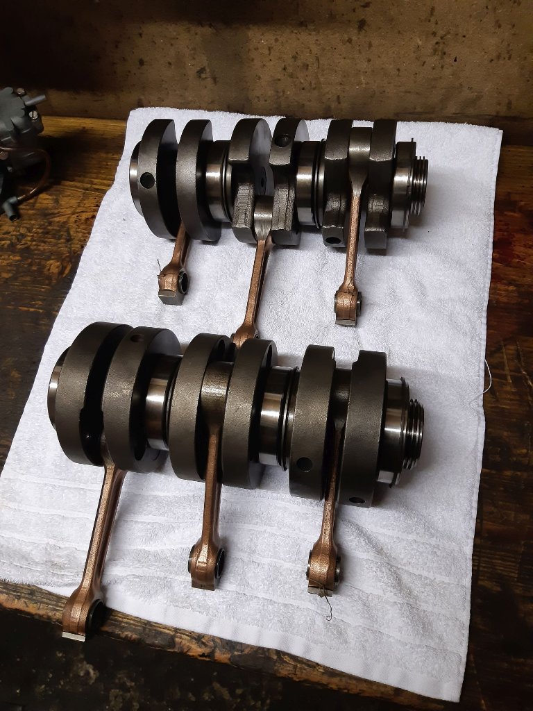 Ach schau an, bestätigt aber meine Auffassung. Der handwerklich Auffwand beim Wiegen, Messen und Zusammenstellen war/wäre in der Serie wohl ohne die Gefahre eines übermäßigen Ausschußes nicht realisierbar, da ist es dann ökonomischer, im Nachgang den kpl. Kurbeltrieb zu wuchten.... denn die Hubscheiben an sich sind dynamisch auf eine Sollunwucht ausgewuchtet und die ganze Kurbelwelle habe mitsamt montiertem Drehschwingungsdämpfer und Schwungscheibe selten einen Unwuchtfehler über 2gcm. Wichtiger sind nach Auffassung von Herrn Richter die Einhaltung des Stichmaßes (Abstand Lagerzapfenmitte - Hubzapfenmitte) und eine entsprechende Paarung der Hubscheiben, das Wiegen der Pleuel auf Kopf- und Fußgewicht sowie das Zusammenstellen eine Pleuelsatzes mit grammgenauer Paarung sowie gleiche Kolbengewichte. Die Wellen werden bei seiner Regenerierung auch nicht gewuchtet, sondern auf einen Rundlauffehler von max. 15/1000mm (zulässig sind 25) ausgerichtet.