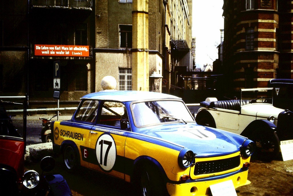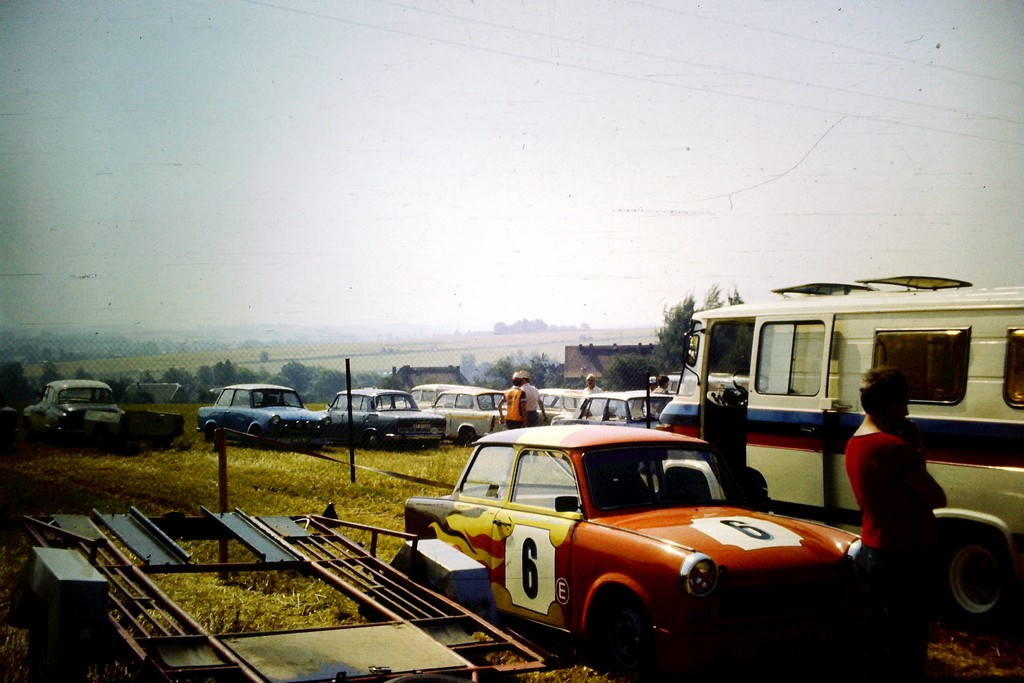 Der Trabant war übrigens ein Gruppe A Auto und lief in der DDR-Meisterschaft. Nach den Rallyes kam der Serienmotor wieder rein und die Anhängerkupplung dran (siehe Steckdose an der Heckwand) und es war bis zur nächsten Rallye wieder ein Alltagsfahrzeug. Über den Fotoapparat den ich damals hatte reden wir lieber nicht
