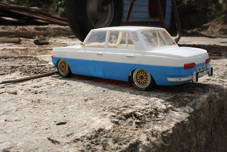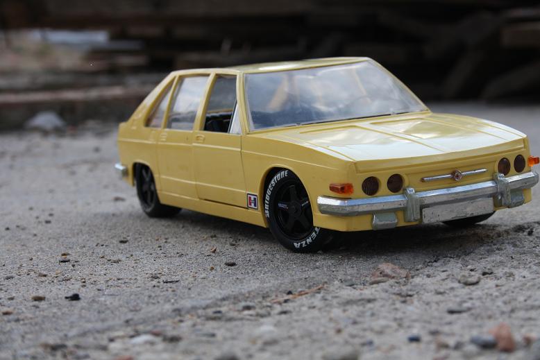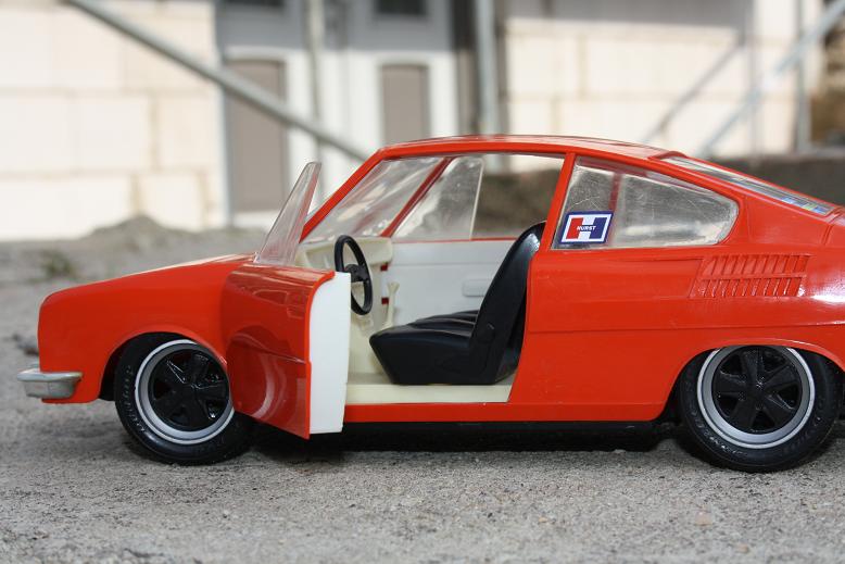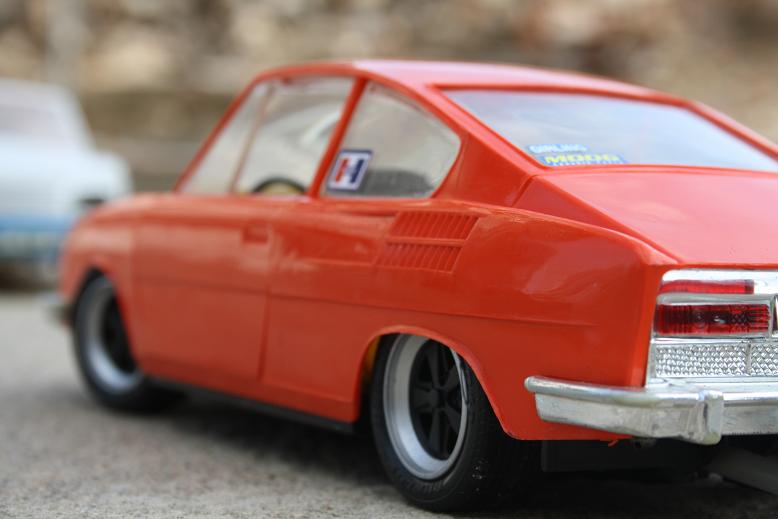 hier meine neuste kreation....ein mittlerweile sehr selten gewordener skoda 110R von ITES aus der ehemaligen ČSSR in 1:18...da er früher auch Ost Porsche genannt wurde,dachte ich mir mal,ich spendiere ihn mal ein 16" Fuchs Felgen und eine geringfügige tieferlegung.....oberste priorität war das der skoda noch voll lenk und fahrbar bleiben sollte,wie es sich halt für ein fernlenkauto gehört....