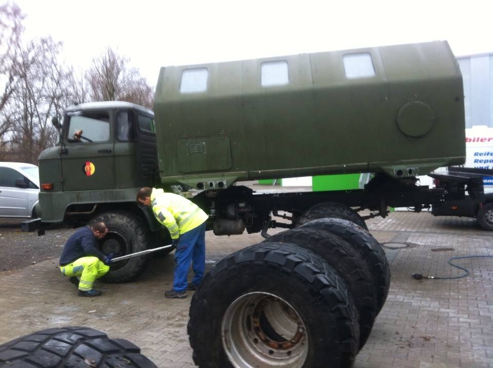 Letzte Woche vom Fachbetrieb bei meinem LKW die Felgen wechseln lassen. Bei ca. 250 kg pro Rad macht man das nicht selber.